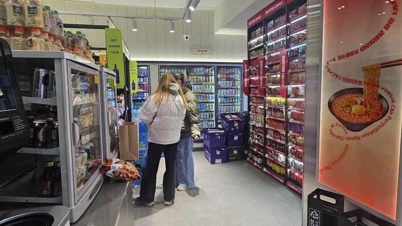 지난해 문을 연 CU홍대상상점은 가로 6m, 세로 2.5m 크기의 봉지 라면 전용 진열장이 특징이다. 이 편의점에선 한강라면처럼 조리기에서 라면을 끓여 컵라면 모양의 커다란 테이블에서 먹을 수 있다. 평일 오전인데도 유모차에 아기를 태운 가족 등 많은 외국인들이 방문했다. 홍콩에서 왔다는 사만사 웡씨(21)는 "홍콩에선 이런 것을 볼 수 없다"며 "다양한 라면을 경험해 보고 싶어 왔다"고 했다.