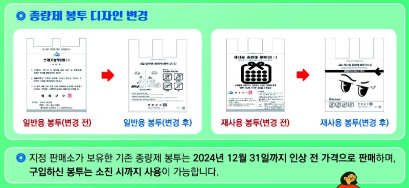 종량제 봉투 디자인은 배출 편의성을 높이고 올바른 쓰레기 분리배출 안내 정보를 포함해 변경했다.