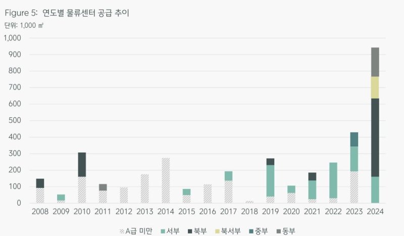 다만 내년부터는 누적된 신규 물류센터 착공 지연과 함께 신규 개발 수요 둔화가 현실화하며 공급이 급감할 것으로 CBRE는 내다봤다.