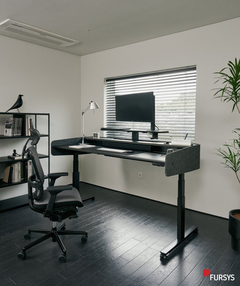 신제품은 '듀얼 컨트롤' 기능을 채택해 하나의 컨트롤러에서 전환 스위치를 사용해 책상과 모니터 선반의 높이를 모두 조절할 수 있도록 했다.
