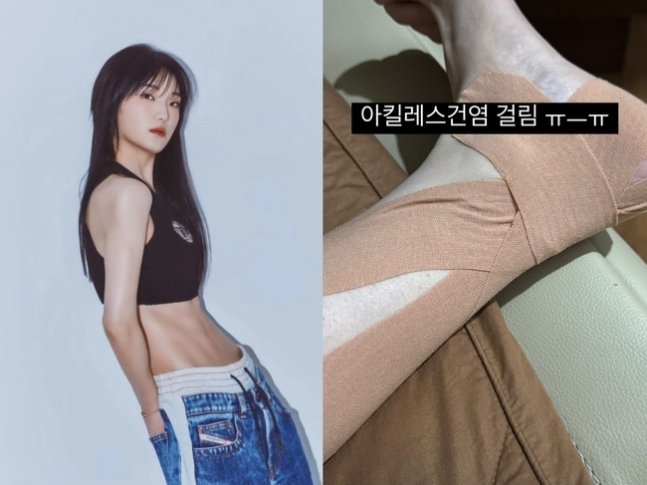 히밥은 12일 소셜미디어에 "아킬레스건염 걸림"이라고 적고 사진을 게재했다.