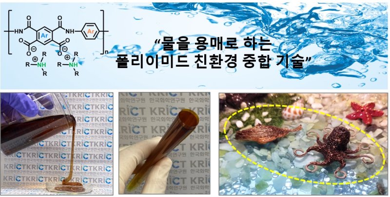 한국화학연구원(KRICT) 원종찬·김윤호·박종민 박사 연구팀은 물을 용매로 사용해 고온 내구성과 높은 강도를 갖춘 폴리이미드를 중합하는 친환경 공정을 성공적으로 구현했다고 15일 밝혔다.