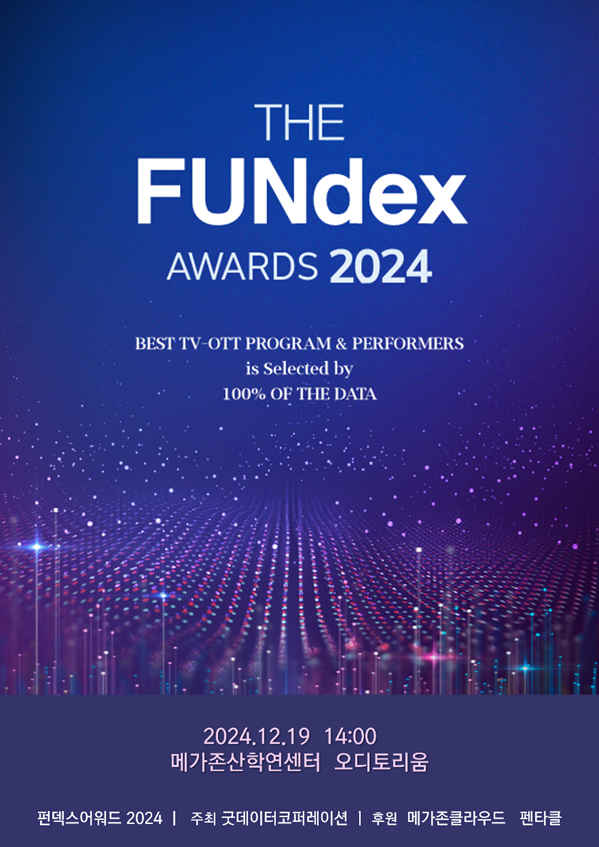 펀덱스 어워드는 K-콘텐츠 경쟁력 분석기관 굿데이터코퍼레이션이 TV 프로그램 및 온라인동영상서비스(OTT) 콘텐츠의 화제성과 경쟁력을 100% 데이터에 기반한 분석·평가로 최고의 작품과 출연자를 선정해 시상한다.