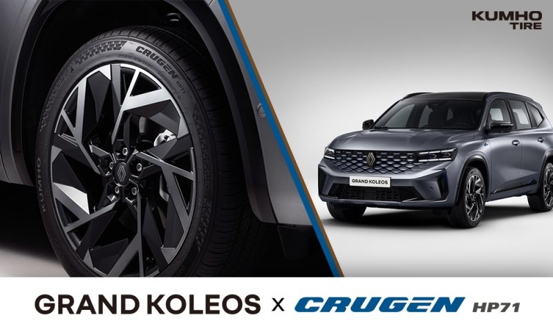 그랑 콜레오스에 공급되는 '크루젠 HP71' 부드러운 주행감과 정숙성을 강화한 고성능 타이어로, 기존 제품 대비 마모와 스노우 성능을 20% 이상 높인 것이 특징이다.