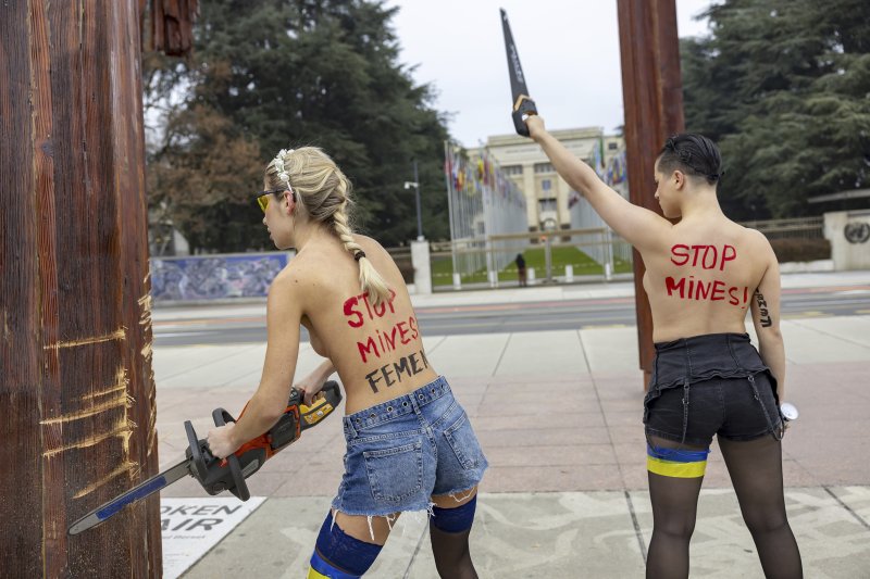 지난 13일(현지 시각) 최소 3명의 페미니스트 활동가는 스위스 제네바의 유엔 건물 앞에서 러시아-우크라이나 전쟁에 항의하며 조형물을 파손했다. 유엔이 분쟁을 막지 못한 것에 대한 불만을 표시한 것이다.