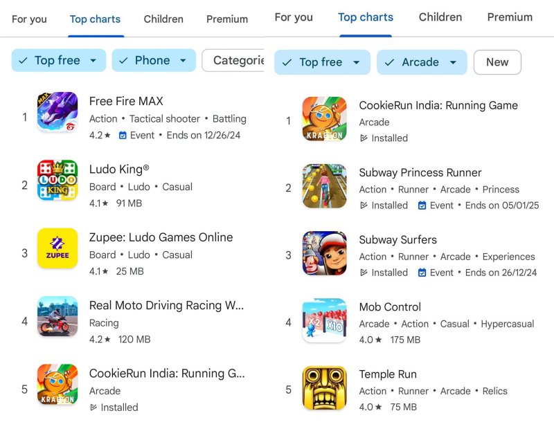 17일 데브시스터즈에 따르면 '쿠키런 인도'는 현지 구글플레이 인기 게임 5위에 올랐다. 그중 인기 게임 아케이드 부문에서는 1위를 차지했다.