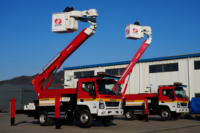 활선작업차는 활선보수작업과 전선압축, 수목전지 등 유압공구작업에 사용되는 차량으로 고전압의 배전선로 공사 등 위험한 환경에서 작업자 안전과 작업의 효율성을 우선으로 제작됐다.