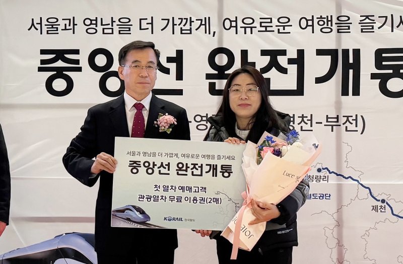코레일은 개통 첫날인 20일 오전 안동역과 태화강역, 부전역에서 중앙선 이용객 환영 행사를 열고 첫 고객에게 관광열차 무료이용권을 증정하는 등 기념품을 나눠줬다.