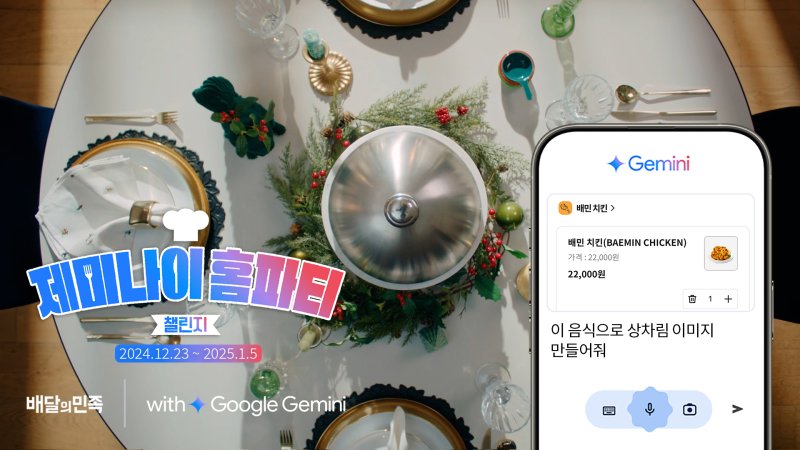 연말 크리스마스 시즌을 맞아 진행하는 제미나이 홈파티 챌린지는 배민 애플리케이션(앱)과 제미나이를 활용해 고객 누구나 참여할 수 있으며 내년 1월 5일까지 진행된다.