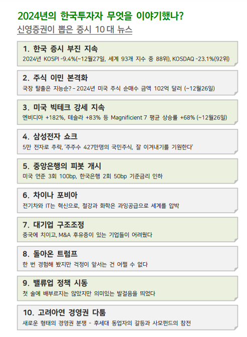 주식전략 담당 박소연 연구원은 한국 주식시장의 누적된 문제를 과소평가했다는 점을 올해 실수로 꼽았다. 이 여파로 기업 밸류업 프로그램 기대감에 따른 증시 상승세는 오래가지 못했다.