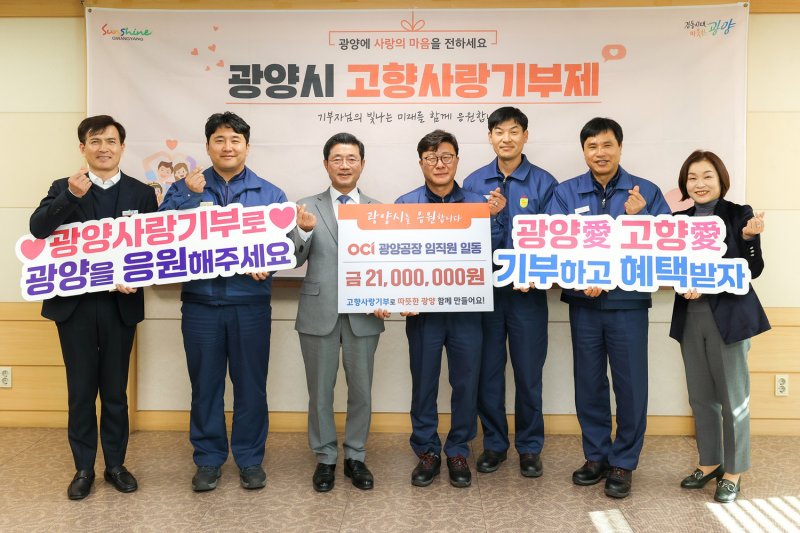 (광양=뉴스1) 서순규 기자 = 전남 광양시는 OCI 광양공장 임직원 210명이 고향사랑 기부금 2100만 원을 전달했다고 30일 밝혔다.