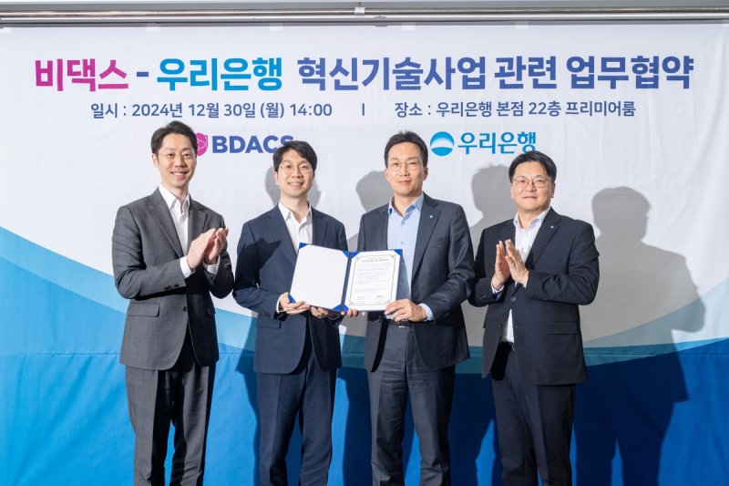 우리은행은 이날 협약 체결과 더불어 비댁스의 지분 일부를 취득해 긴밀한 관계를 구축했다.