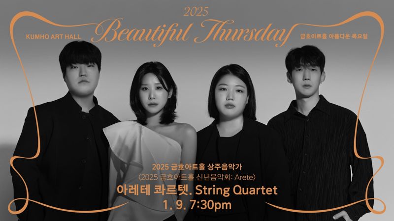 2025년 금호아트홀 상주음악가로 선정된 아레테 콰르텟은 지난 2020년 금호영체임버콘서트로 데뷔했다. 2021년 프라하 봄 국제 음악 콩쿠르를 시작으로 2023년 모차르트 국제 콩쿠르, 2024년 리옹 국제 실내악 콩쿠르에서 연이어 우승하며 크게 주목받았다.