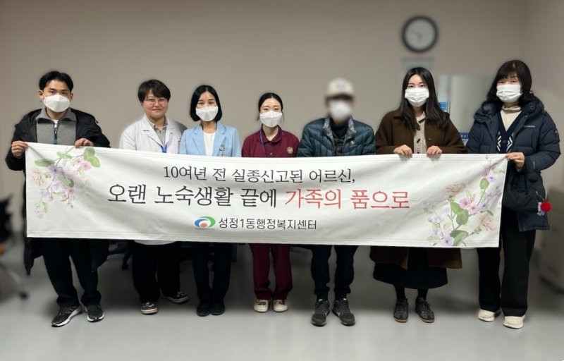 박성필 성정1동장은 "어려운 이웃을 외면하지 않고 신고해 준 주민이 있었기에 오랜 기간 실종된 어르신이 가족 품으로 돌아가게 됐다"며 "앞으로도 복지 사각지대에 놓여 있는 이웃을 찾는 데 더욱 노력하겠다"고 말했다.