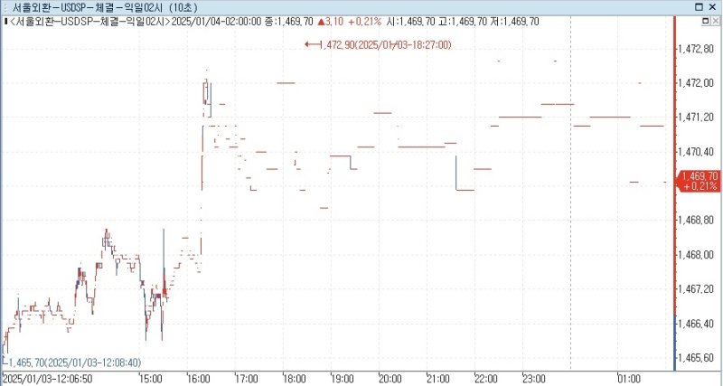 4일(한국시간) 새벽 2시 달러-원 환율은 전장 서울환시 주간 거래(오전 9시~오후 3시반) 종가 1,466.60원 대비 3.10원 상승한 1.469.70원에 마감했다.