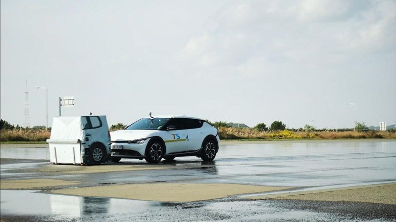 이번 시험은 자율주행의 핵심 기술인 비상자동제동장치(AEBS)와 적응형순항장치(ACC)의 성능을 검증하기 위해 진행됐다. 시험 대상 차량은 기아 EV6, 르노 그랑 콜레오스, BMW 530e로 다양한 노면 조건을 설정해 실험이 이뤄졌다.