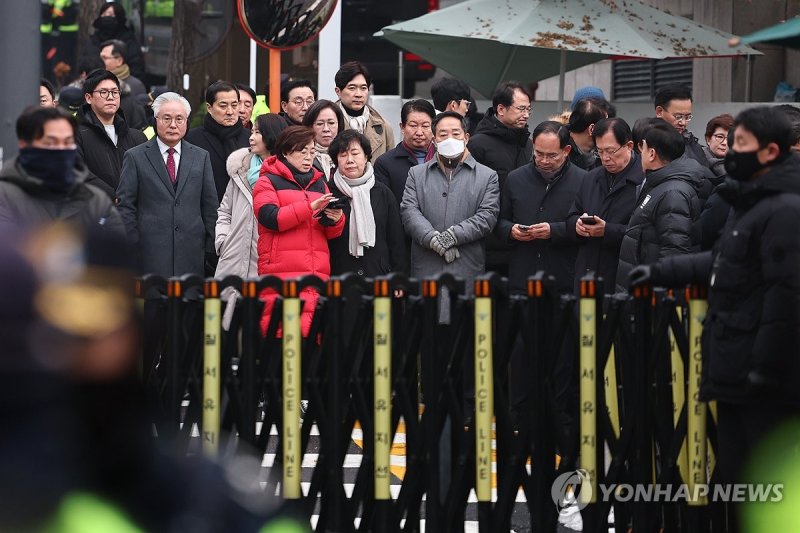 윤 대통령 체포영장 유효기간 만료일인 이날 관저 앞에는 김기현 윤상현 조배숙 박대출 김석기 김정재 이만희 임이자 권영진 유상범 이인선 강승규 박성훈 임종득 등 의원 30여명이 모였다.