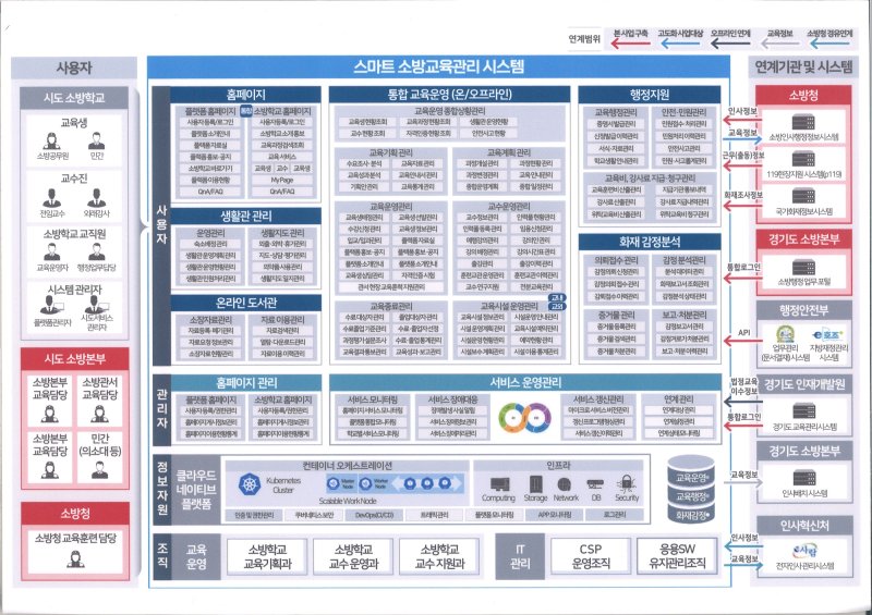 이 시스템은 소방학교의 교육설계에서 운영, 통계 등 교육 전 과정을 클라우드 환경에서 지원하고, 임용에서 퇴직까지 교육이력을 관리하는 것은 물론 자기 계발학습을 지원함으로써 소방공무원 직무역량 강화에 기여할 것으로 주목받고 있다.
