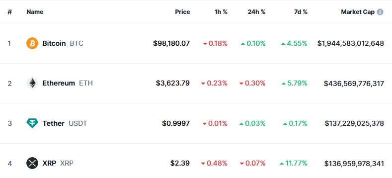 같은 시각 비트코인은 0.10% 상승한 9만8180달러에 거래되고 있다.
