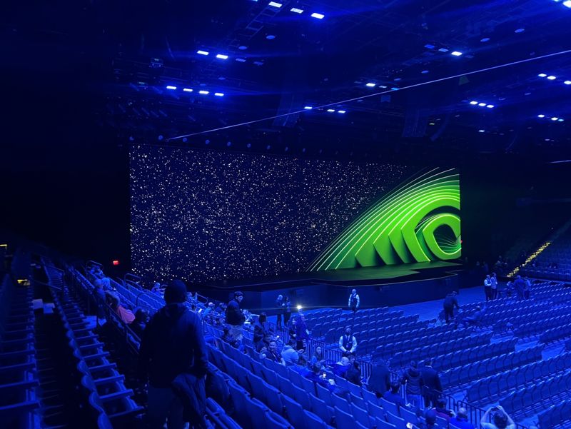 기조 연설장은 1만명은 족히 넘게 들어갈 수 있을 정도의 크기였다. 기자가 들어올 때는 팝가수 워터멜론 슈가의 'Harry Styles'가 흘러나왔다. 조명은 엔비디아의 상징인 초록 불빛과 주황 불빛 그리고 흰색 불빛이 교차했다.