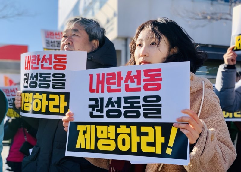 윤석열정권 퇴진 강원운동본부는 7일 강릉시 교동 권성동 의원 지역구 사무실 앞에서 기자회견을 열고 "권 의원의 의원직 제명에 관한 청원에 돌입한다"고 밝혔다.