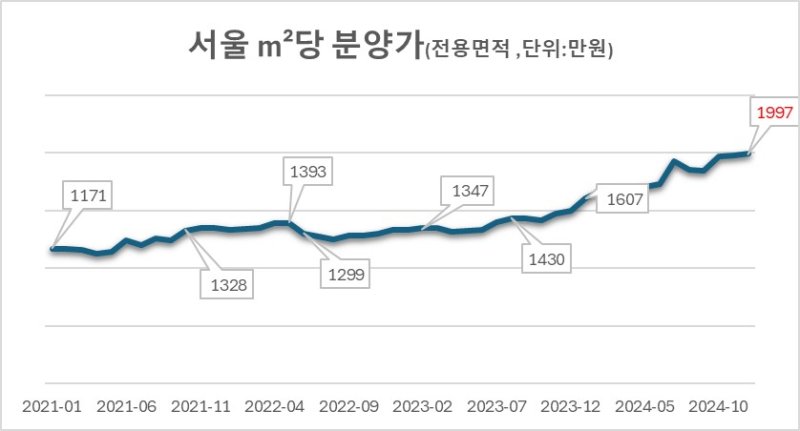 지난해 서울 1㎡ 평균 분양가 1997만원
