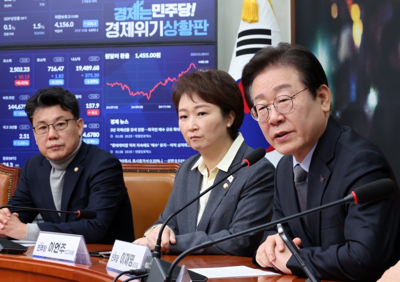 이 대표는 "금융시장이 경제 상황을 현실적으로 잘 보여주는데 우리 국민들께서 경제 상황에 걱정이 매우 많다"며 "일선에서 잘 살펴주고 계시는데 지금 위기 상황이라 특별히 금융당국, 외환 당국의 노력이 절실히 필요한 때라고 생각한다"고 했다.