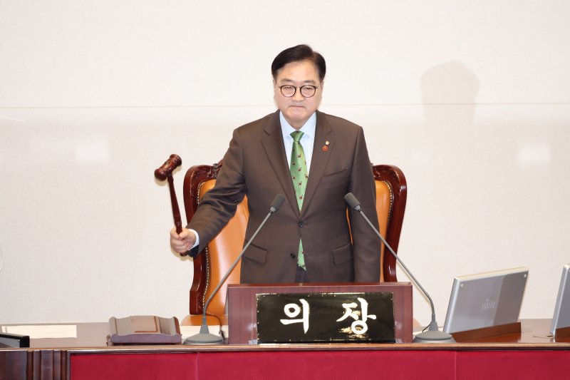 우 의장의 발언에 여당 의원들은 "사회를 봐라"며 거세게 항의했다. 이날 본회의에서는 '내란·김건희 특검' 등 대통령 권한대행 체제에서 재의요구권(거부권)이 행사된 법안 8건에 대한 재의결이 실시된다.