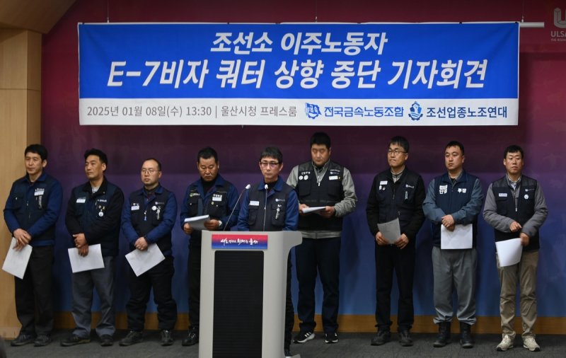 이어 "그러나 정부는 사측의 요구에 따라 단기적 이주노동자만 확대해 E-7 비자의 20% 쿼터 제한을 한시적으로 30%로 상향했을 뿐"이라며 "여기에 더해 미국 대선에서 트럼프 대통령(당선인)이 언급한 조선업 협력을 위해 E-7 비자 확대를 검토하겠다고 하는 것에 분개하지 않을 수 없다"고 주장했다.