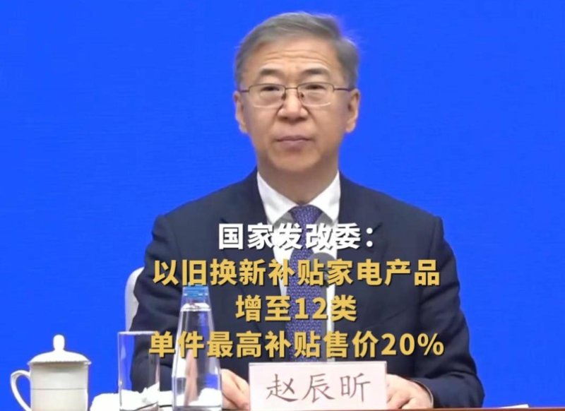 국가발전개혁위원회와 재정부가 이날 발표한 ‘대규모 설비 갱신과 소비재 이구환신(以舊換新·중고 제품을 신제품으로 교환) 지원 정책 강도·범위 확대 통지’에 따르면 지원 대상 가제제품 종류를 8개에서 12개로 늘렸다.