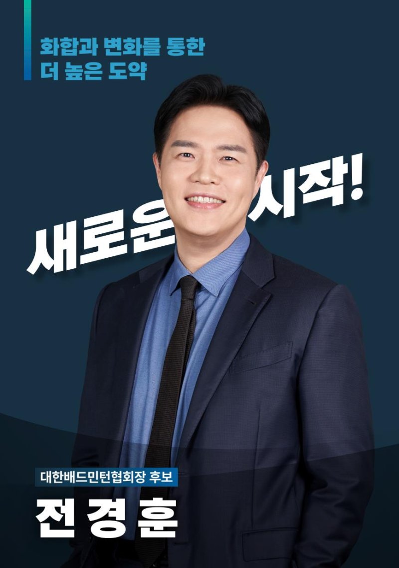 전경훈 후보는 "대한민국 배드민턴이 국내를 넘어 세계를 선도하는 스포츠로 자리 잡을 수 있도록 협회를 안정화하고 지속 가능한 발전의 토대를 마련하겠다"고 말했다.