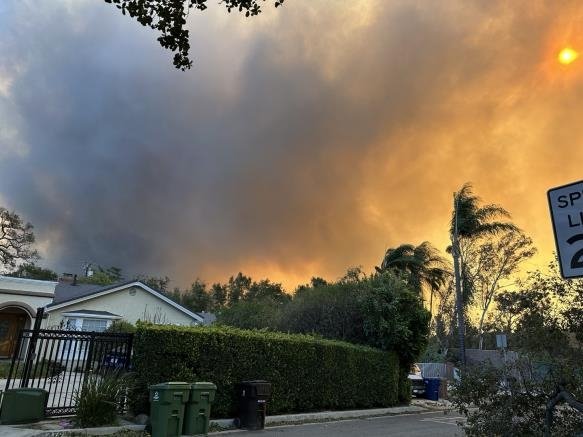산지와 가까운 곳에 있는 미 항공우주국(NASA) 제트추진연구소(JPL) 건물 앞에서는 동남쪽의 산불 중심부에서 연기가 맹렬히 솟아오르는 모습이 더 가깝게 보였다. 산봉우리들에 가려 불꽃은 보이지 않았다.