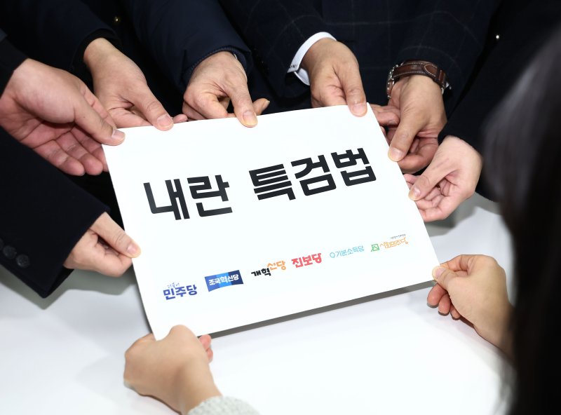 [서울=뉴시스]신재현 김경록 기자 = 더불어민주당을 비롯한 야(野)6당이 9일 대법원장이 특검 후보자를 추천하도록 하고 이에 대한 야당 '비토권'은 제외한 '제3자 추천 내란특검법'을 발의했다. 수사대상으로 외환죄가 추가된 가운데 이르면 오는 14일 본회의에서 내란 특검이 처리될 전망이다.