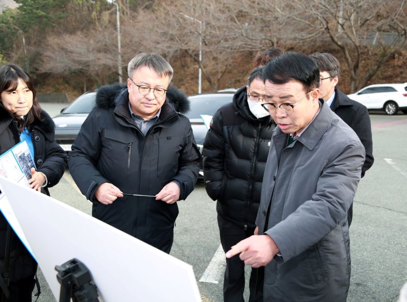 박 청장은 웅동1지구 개발사업의 신속한 정상화 방안을 찾기 위해 현장을 둘러보고, 진입도로 개설 공사 및 북측 간선도로 개설 공사 추진 상황을 점검했다.