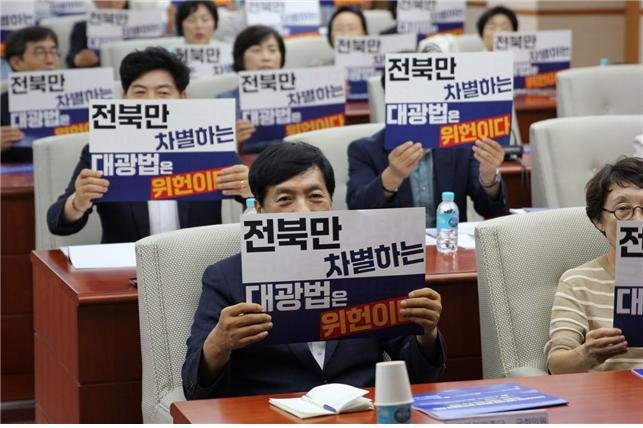 이들은 "전북은 특별시나 광역시가 없다는 이유로 대광법에서 제외돼 법 제정 후 17년 동안 한 푼의 예산도 받지 못했다"라며 "이에 따라 177조원의 국비가 수도권, 부산·울산권, 대전권, 광주권, 대구권에 집중됐다"고 지적했다.