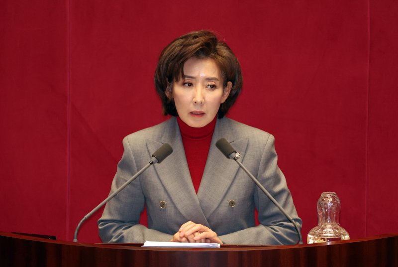 [서울=뉴시스] 이승재 기자 = 나경원 국민의힘 의원은 12일 더불어민주당이 카카오톡 등을 통해 가짜뉴스를 퍼트리면 내란선전죄로 고발하겠다는 방침을 밝힌 데 대해 "탄핵은 무효다. 내란 선전으로 고발해달라"고 했다.