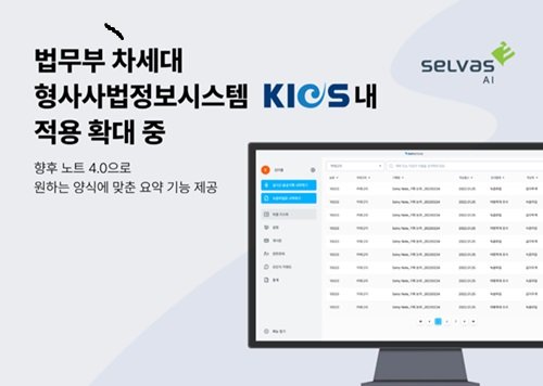 [서울=뉴시스] 배요한 기자 = 셀바스AI는 인공지능(AI) 음성인식 서비스 셀비 노트(Selvy Note)가 법무부 차세대 형사사법정보시스템(KICS) 내 성공적으로 적용됐으며, 사용처가 지속 확대되고 있다고 14일 밝혔다.