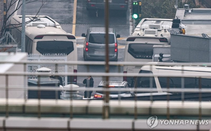 한남동 관저 출입구 통과하는 차량 (출처=연합뉴스)