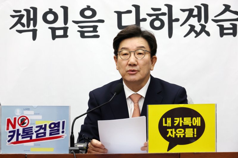권 원내대표는 "역대 정부 중 외환 위기를 가장 고조 시킨 당사자는 문재인 정부"라며 "특검으로 외환죄를 수사해야 한다면 문재인 정부와 민주당이 (수사 대상이) 돼야 한다"고 설명했다.