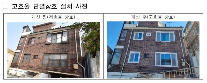단열창호와 고효율 LED 조명 지원 한도는 교체 공사비 70% 이내(부가가치세 제외)다.