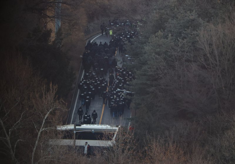 앞서 공수처와 경찰은 오전 5시부터 관저 진입을 시도했으나 윤 대통령 지지층에 가로 막혔다. 2시간30분 뒤인 오전 7시30분께 사다리를 통해 차벽을 넘고 절단기로 철조망을 뚫으며 1차 저지선을 통과했다.