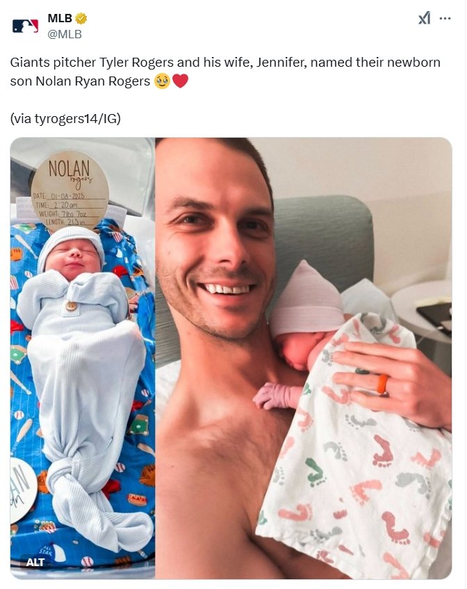 MLB닷컴은 15일(한국 시간) 로저스가 새로 태어난 둘째 아들의 이름을 '놀런 라이언 로저스'로 지었다고 보도했다.