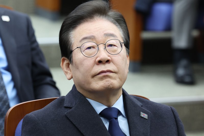 [서울=뉴시스] 권창회 기자 = 이재명 더불어민주당 대표가 15일 오전 서울 여의도 국회에서 열린 비상의원총회에서 윤석열 체포 뉴스를 시청하고 있다. 2025.01.15. kch0523@newsis.com /사진=뉴시스