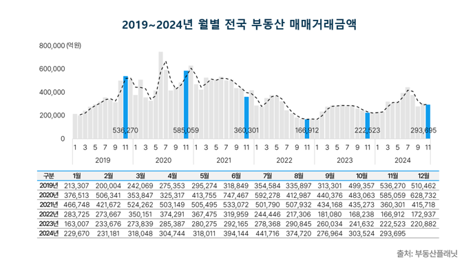 부동산플래닛 '2024년 11월 전국 부동산 유형별 매매시장 동향 보고서'