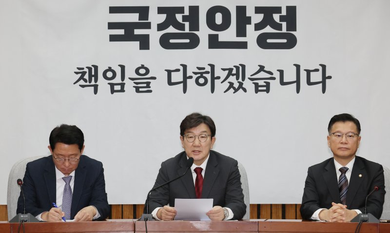 권 원내대표는 이날 국회에서 원내대책회의를 열어 "계엄 선포 관련자 수사는 대부분 완료돼 특검 도입 이유가 전혀 없다"며 이같이 말했다.