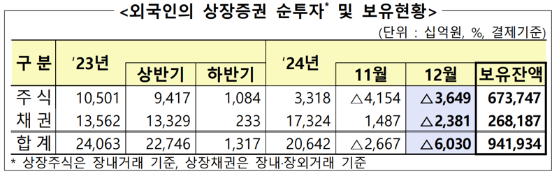 2024년 12월 외국인 증권투자 동향<BR>