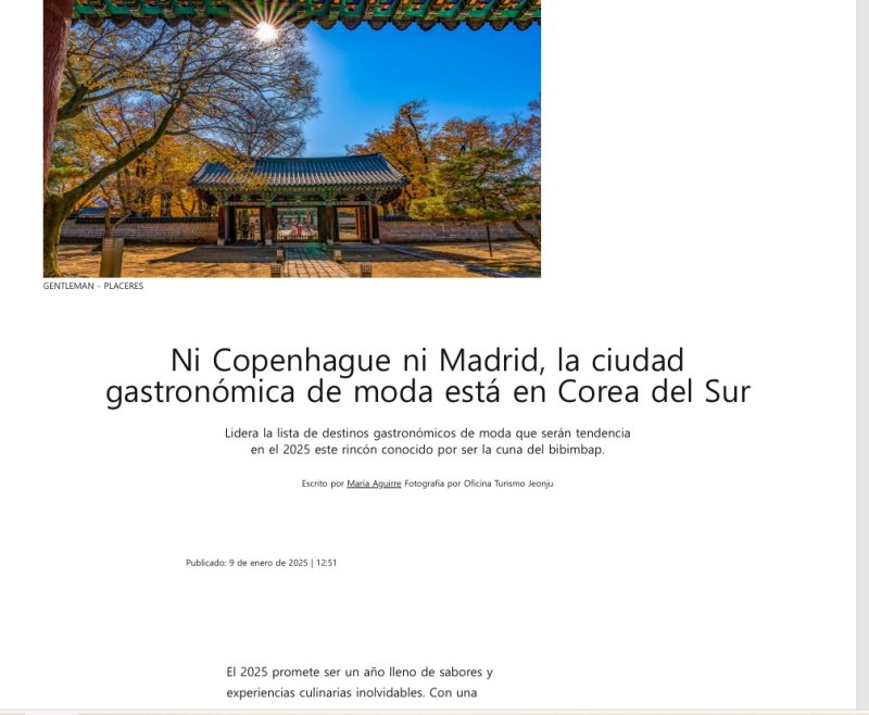 스페인 월간지 젠틀맨은 1월호 기사에서 ‘유행하는 미식 도시는 코펜하겐도, 마드리드도 아닌 한국의 도시’라는 제목으로 전주를 소개했다.