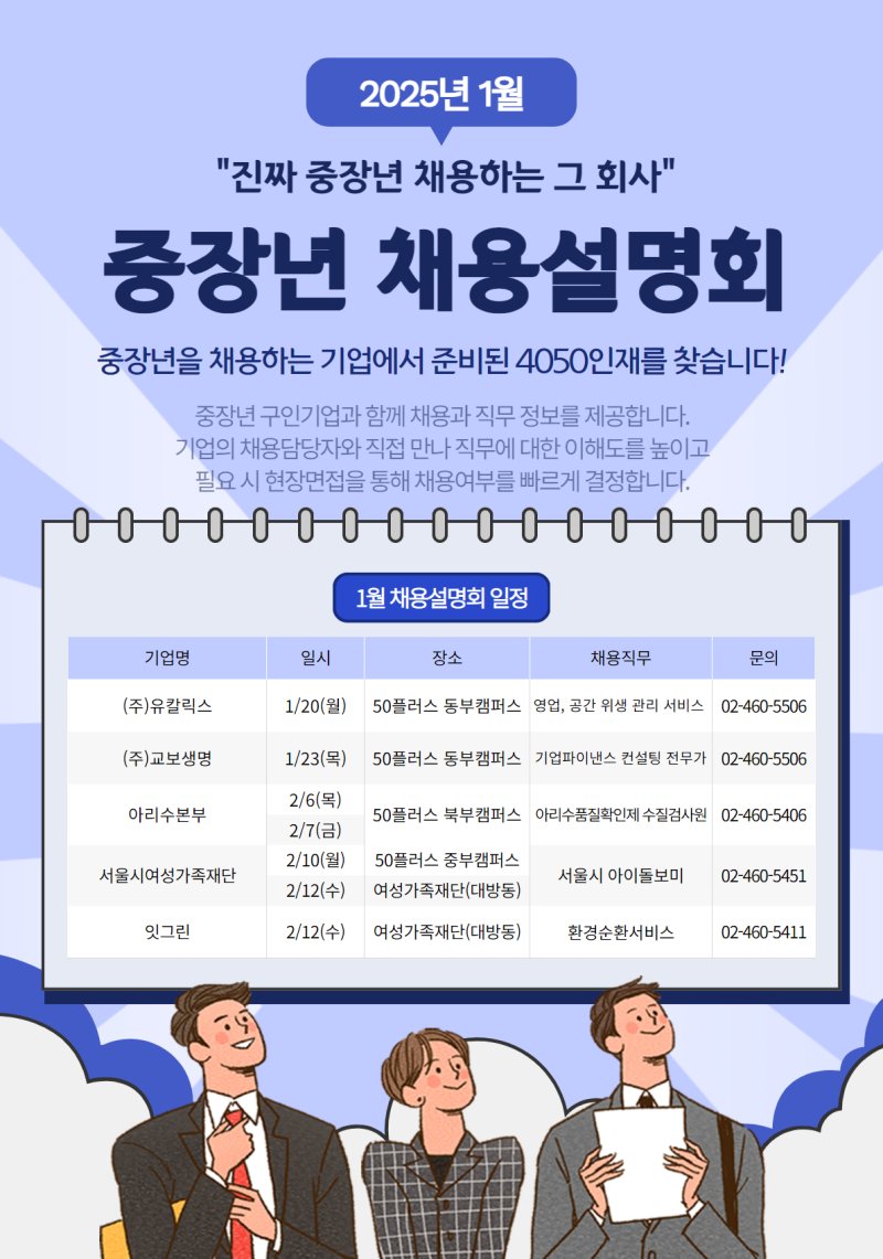 강명 서울시50플러스재단 대표는 "초고령화 시대에 중장년층의 경제적 안정은 사회 전체의 과제"라며 "올해는 다양한 일자리 사업을 통해 중장년 세대가 빠르게 취업 기회를 찾고, 새로운 도전에 나설 수 있도록 적극 지원하겠다"고 말했다.