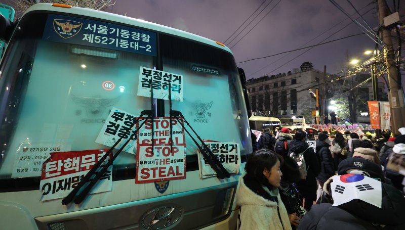 실제로 전날 헌재 인근에서는 서부지법에서 행진해 온 윤 지지자들이 '탄핵 기각'을 요구하며 집회를 벌였다. 현행범으로 추가 체포된 윤 대통령 지지자는 2명으로, 이 중 1명은 헌재 담을 넘으려던(건조물침입) 혐의를 받았다.