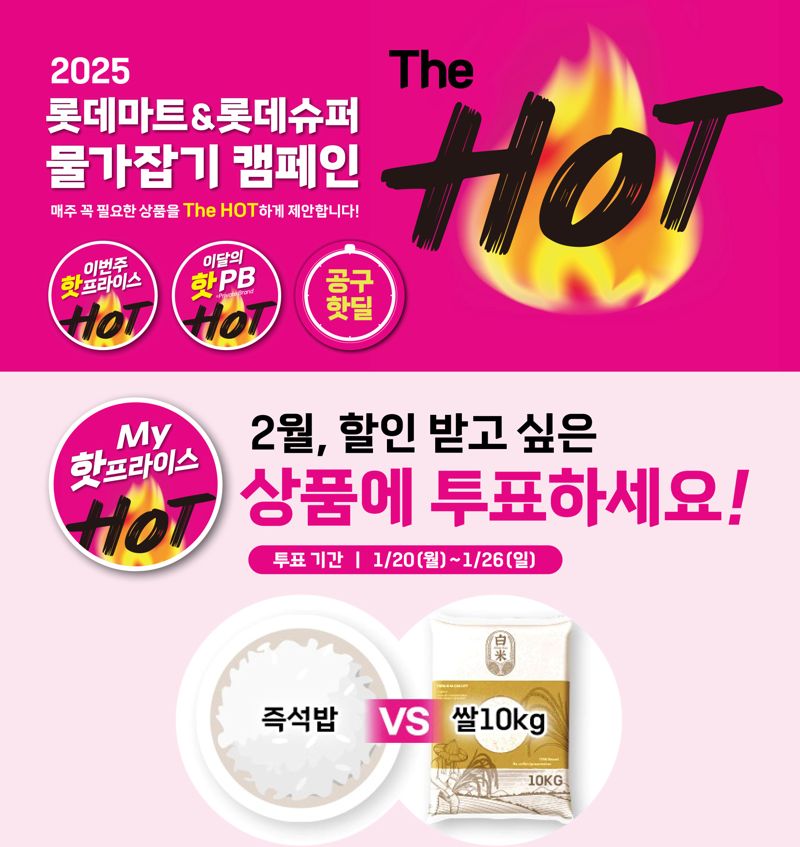 롯데마트·슈퍼는 2025년 물가잡기 캠페인 '더 핫'의 일환으로 'My 핫프라이스'를 진행한다.